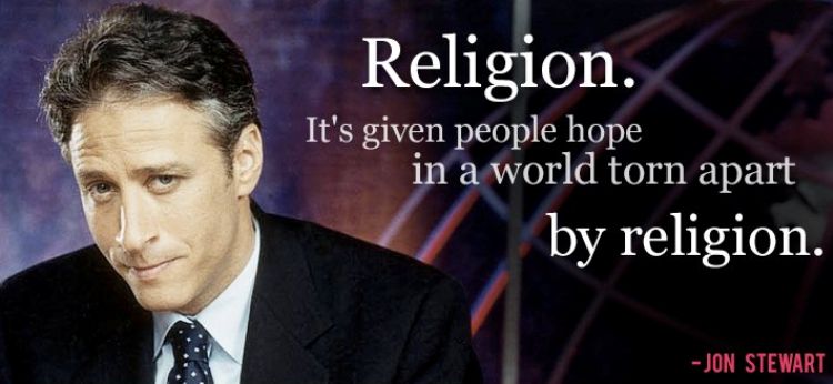 Jon Stewart provides a sage quote on the wisdom of religion in a world torn apart by religion.