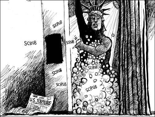 [tags]lady liberty, torture, cia torture, Guantanamo bay, abu ghraib, torture scandal, bush administration, cia torture programs, united states, statue of liberty, political cartoon, comics, satire, comic about torture in america, us torture prosecution[/tags]