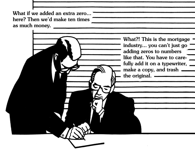 [tags]mortgage industry, mortage industry, bailout, fraud, tax evasion, lies, comic, political cartoon, economics, cooking the books, financial industry[/tags]