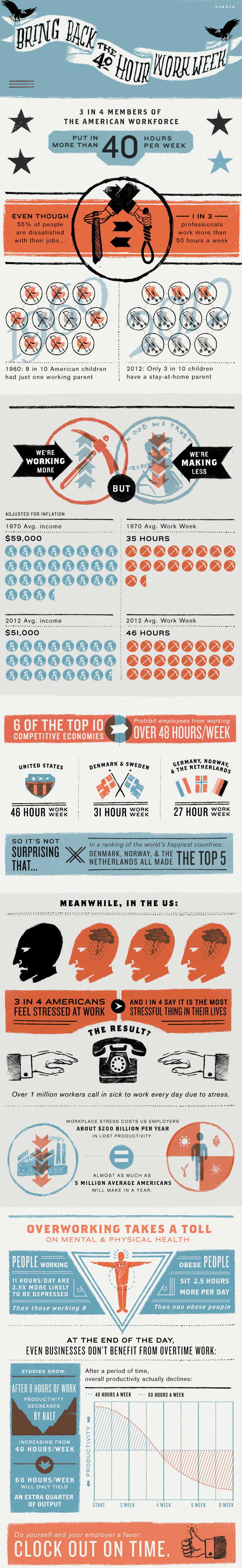 A handy infograph on why the 40 hour work week needs to come back in the United States.