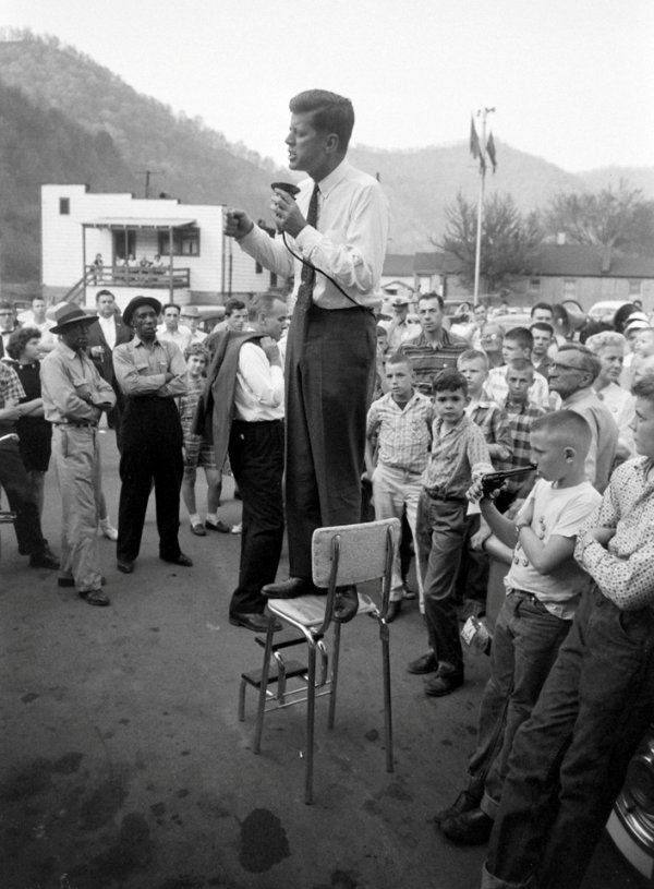 John F. Kennedy addresses a crowd in Logan County, West Virginia during the 1960 Presidential campaign.