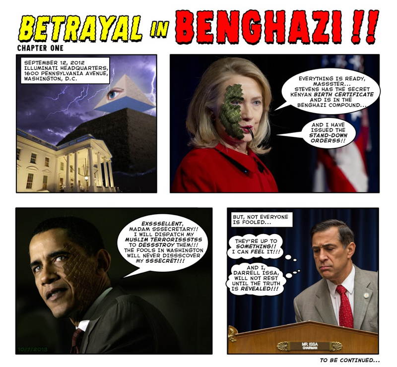 Radical Islam. Reptilians. Illuminati. Finally, a rational explanation for the diplomatic failure that was Benghazi, achieved.