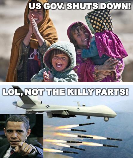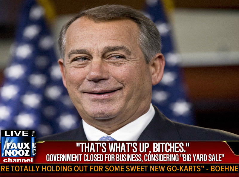 In a move so moronic that it doesn’t even qualify as evil, the current House GOP has finally done it: they’ve “shut down” the federal government. Pay no mind to the fact that the most important aspects of the Affordable Care Act were implemented regardless, or that 800,000 Americans–you know, the blue collar sort about which the GOP claims to care soooo much–don’t know when they’re going to receive their next paycheck. Or that, well, less than 24 hours in, popular favor has already shifted toward Democrats for upcoming 2014 elections and that the ACA website has been swamped with traffic. Pay no mind to any of that. That’s just reality. Anyway, a tiny faction of the Republican Party is that much closer to unleashing their ideological fantasy on the country, and in their eyes–regardless of the consequences–it’s a success. The Internet, however, begs to differ.