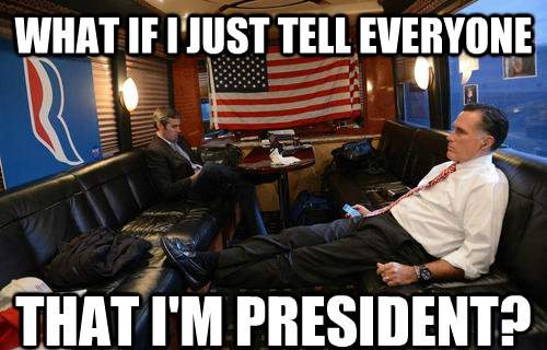 After the 2012 Presidential election, Mitt Romney sits down to reflect on his failed bid to become President of the US. Behold, the Mournful Mitt Meme [all images created via QuickMeme]: