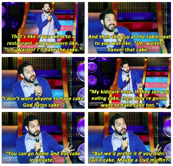 Comedian and Workaholics creator Adam Devine has made an apt comparison between gay marriage and restaurants. Muffins are to cake what civil unions are to marriage: inferior goods.